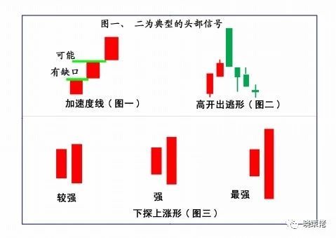 加速度线是典型的头部形态。特别是已上涨很多的个股遇到这种形态更要倍加小心。一般来说,一个权重股连拉3根大阳线,做多能量一下子消耗太大,接下来十有八九会出现一轮调整(请参见下面图一)。