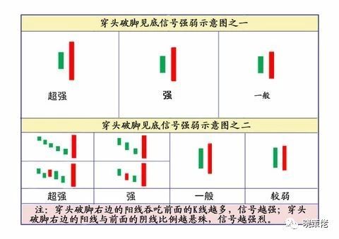 虽然,从统计上来说,穿头破脚作为见底信号,不如它见顶信号准确率高(因为股价下跌容易上涨难),但是,如果我们把K线中所有见底信号进行排队,可以发现穿头破脚见底信号还是名列前茅的!
