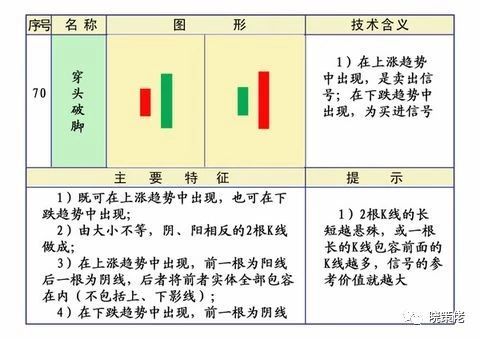 一位股市高手介绍经验,他说他每次都能比较顺利地逃顶,方法是把沪市见顶的K线符号贴在墙上,以来警告自己。他还说,穿头破脚是常见的见顶K线组合,当股市有了一定升幅之后,出现“穿头破脚”就要警惕,股价重心下移,就应赶快止损离场。