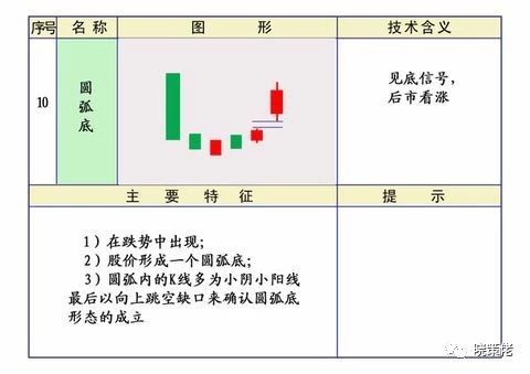 圆底图形细观察,沿着弧度缓慢爬。高空见到头肩顶,头肩离场脑清醒。