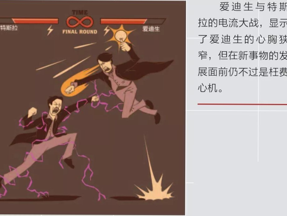 爱迪生与特斯拉的电流大战最终是以特斯拉的完胜而告终,这说明新生事物在经历曲折后必将取代旧事物登上历史的舞台。然而由于“正统”科学的代表爱迪生对特斯拉的百般刁难,这位百年难遇的奇才最终还是在贫困潦倒中郁郁而终。因为一己私利便无所不用其极地打压与自己相反的想法和观点,无疑是科学进步的最大阻碍。