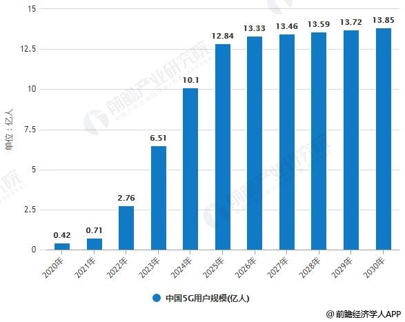 5年后,5G用户将会快速渗透,到几乎完成90%的覆盖率,2030年中国5G用户规模将达到138545.9万人,随着中国5G用户的增加,需求将会使5G市场规模提升,未来四年将会迎来快速增长时期,之后将维持在10%的增速发展,直到下一通信技术的产生。