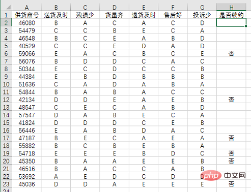 根据公司规定,对每个供货商有六项考核指标,A为最好,E为最差,六项指标中有两个或两个以上的E,则不续约: