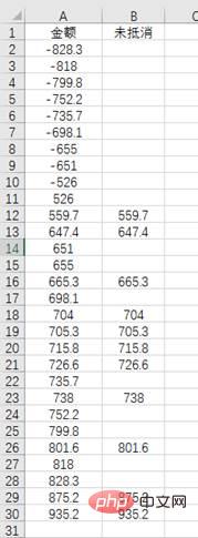 最后要说的这个问题,财务岗位的伙伴一定不陌生,有时候我们会遇到这种情况:在一列数据中有一正一负的情况,这时候需要把未抵消的数据标注(提取)出来,比如图中的例子: