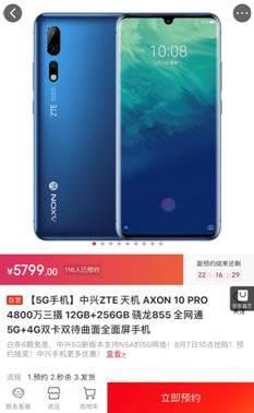 值得一提,8月7日5G先锋中兴天机Axon 10Pro 5G版京东将再次开售,更有12G内存+256G机身存储版在京东独家首销。目前京东已开启免费预约,喜欢的用户不妨提前关注。