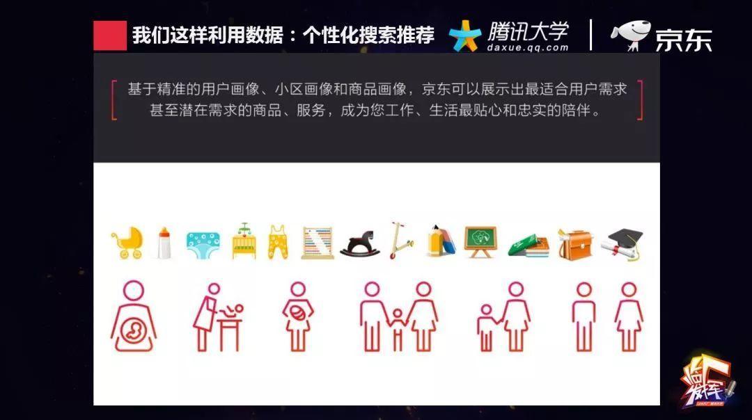 嘉宾刘晖在这里特别为我们介绍了小区画像,中国的商品房模式使得消费、职业上很接近的一群人往往住进了同样的小区。京东拥有自建的物流体系,可以用很精确的商业小区的维度去判断这些用户的共性。比如:这个小区的用户,他在购买婴幼儿商品时,选择的是哪个品牌的进口奶粉,选择的是国产还是进口的电饭煲,这些数据往往非常准确。