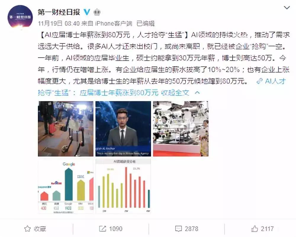 据说很多人还没走出校门,就已经被企业“预定”完毕,AI博士应届生年薪甚至已经涨到 80万……