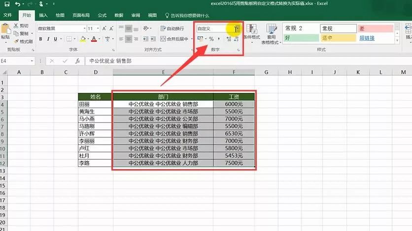 第二步:选中带有自定义格式的单元格,点击“数字格式”选择“常规”,就完成啦!