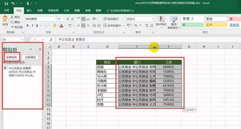 第一步:选中有自定义格式的内容区域,按ctrl+c,打开剪贴板,点击全部粘贴