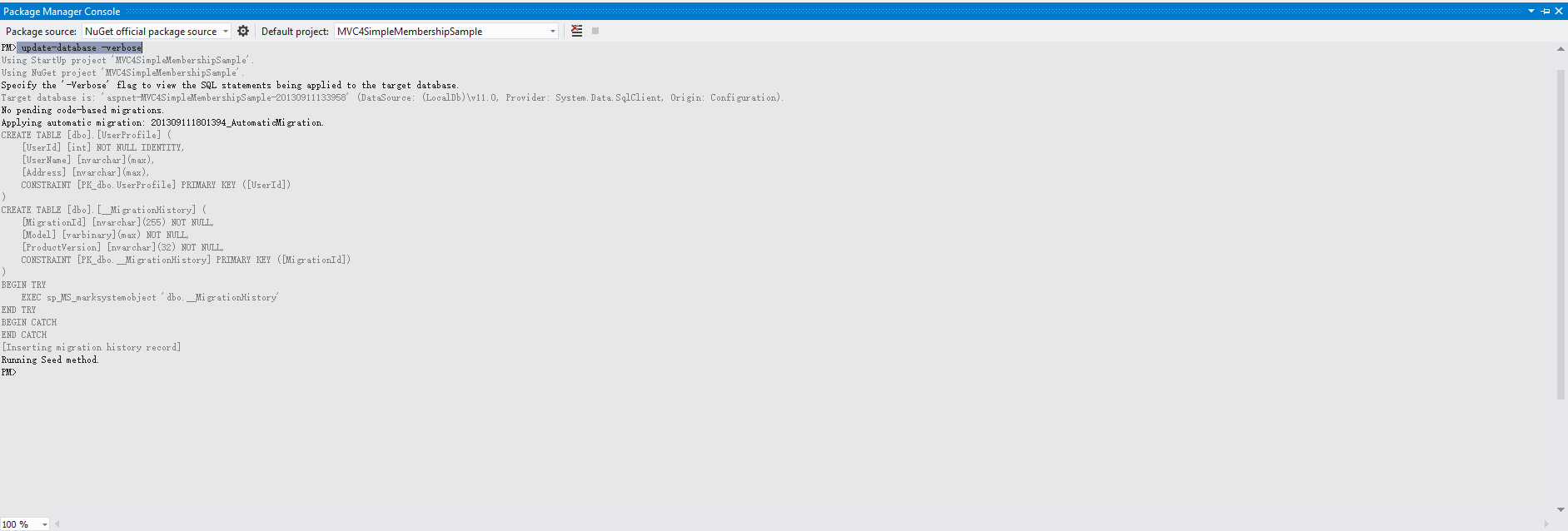 然后再Package Manager Console下运行 update-database –verbose来修改数据库。