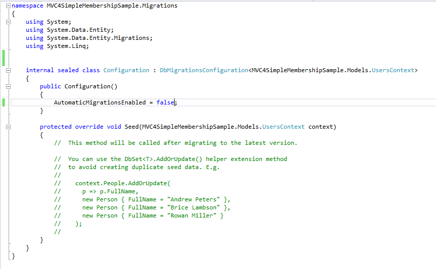 protected override void Seed(MVC4SimpleMembershipSample.Models.UsersContext context)