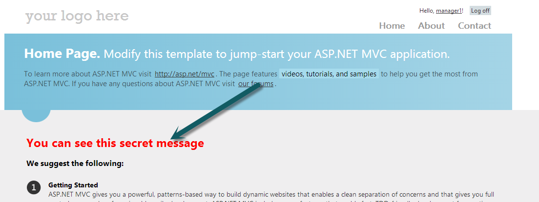 当前角色是Admin的角色的话,我们会在Index页面显示一个秘密的信息