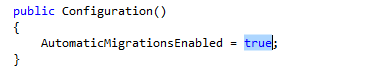 打开Migrations\Configuration.cs之后 你可以看到自动生成的class的代码是这样的。
