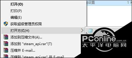 2、打开游戏安装目录,在“steam_api.ini”文件上单击右键,选择【打开方式】-【记事本】;