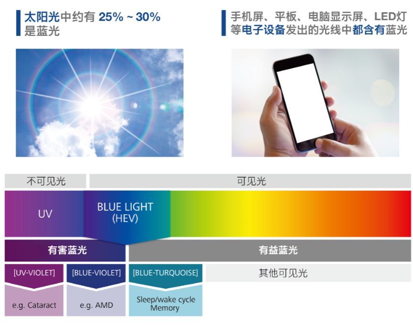 张博士:蓝光作为可见光的一种是无处不在的,而大家对蓝光的担忧和顾虑,主要是由于手机,iPad,电脑等电子屏幕所发出的光线,在蓝光波段有一个峰值,而且整体光谱分布相比自然光呈不自然的分布,长时间观看电子屏幕可能会让眼睛不适和对眼睛潜在影响。不过,大家对于蓝光也不必过于恐慌,科学认识即可。