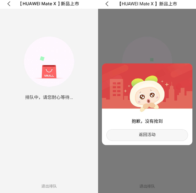 虽然华为Mate X是在今年月份的MWC2019大展上发布的,但由于折叠柔性屏以及配套铰链的生产工艺及其复杂,因此该机一直跳票至11月15日在正式上市,且价格十分昂贵。尽管如此,华为Mate X还是引来了不少网友抢购,甚至有网友笑称抢到一台华为Mate X转手就能转一台苹果iPhone 11 Pro。然而不少网友表示在短暂的排队之后,页面就直接显示售罄了,总共耗时不到1秒。