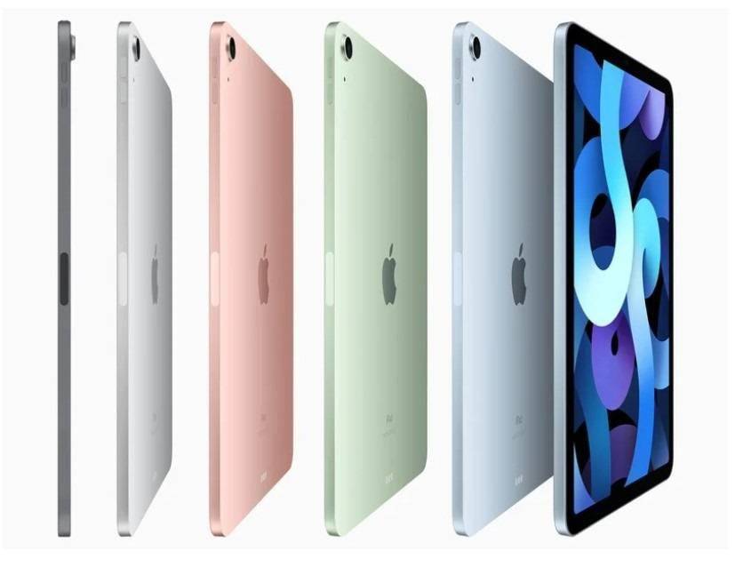 苹果 iPad Air 也是首款提供与 iPhone 颜色相似的独特颜色选择的 iPad,iPad Air 有银色、太空灰、玫瑰金、绿色和天蓝色可供选择。