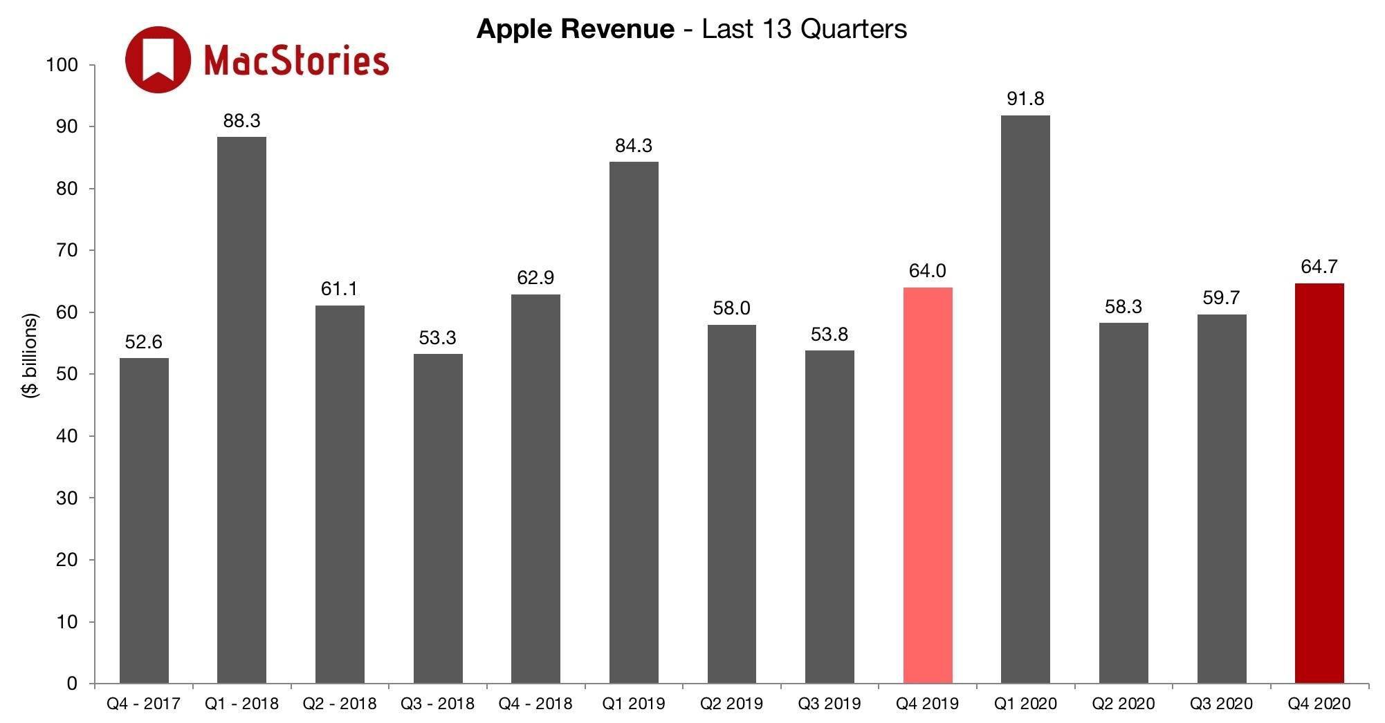 苹果发布了2020年的第四季度财报,和第三季度一样,苹果在在疫情之下的表现依然被人称道,从地区营收、软硬件营收等宏观角度看,苹果的各项指标大多在稳步上涨,看不到下跌空间。
