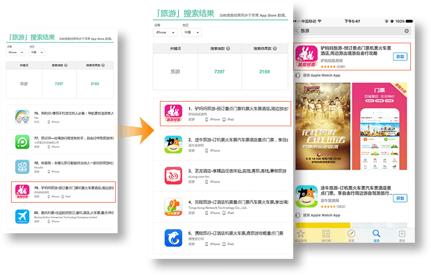 1、ASO关键词搜索排名优化: 遵循苹果iTunes的规则,结合iOS App搜索指数热度数据,优化App关键词搜索排名, 将关键词提升至TOP3或TOP1,当用户搜索相应关键词显示App排名前列,以增加App曝光率 获取更多真实用户下载注册