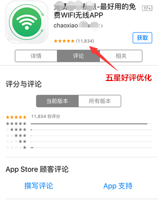 2、App评论优化: 借助于我们的用户评价功能,撰写五星原创评论,提高App在AppStore应用商店的搜索排名