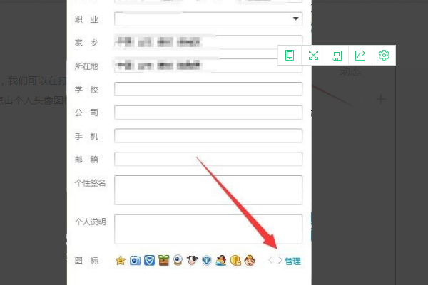 3、在进入个人信息资料编辑页面后点击页面右下方的管理选项,进入图标管理页面中。