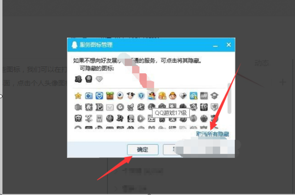 4、点击页面上的取消所有隐藏选项,就可以将所有的图标都显示在QQ上。