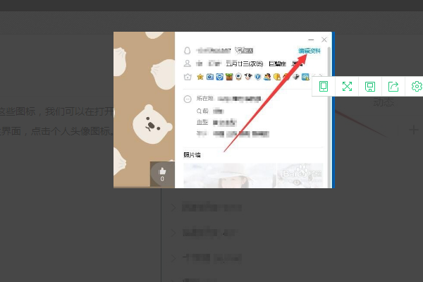 1、在电脑上登录QQ软件后,在QQ的主面板中点击页面上的头像图标,进入个人信息页面中。