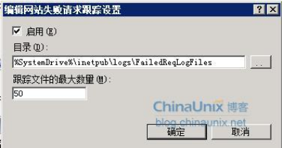 此功能用于应对单站点DDOS攻击时,可以将对服务器的影响降至最低。IIS6只有限制连接数的功能。失败请求跟踪规则相信大家都有遇到过这样的问题:网站一会儿能访问,一会儿不能访问。解决方案不外乎两种:一直跟着,直到问题出现(烦...);或者一行一行地去翻日志(累...)。IIS7给了我们第三种解决方案,这就是失败请求跟踪。针对特定网站设置失败请求跟踪规则,可以让IIS生成该网站无法访问的日志,并单独保存在一个特定的目录下,供管理员查看。设置方法:选择某个站点,在右边的操作界面里,找到“配置”,然后点击下面的“失败请求跟踪”: