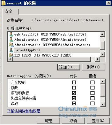 虽然看起来都是ApplicationPoolIdentity,但实际上分属不同账户(一个程序池对应一个账户)。在进行NTFS授权时,可通过“IISAppPool\应用程序池名”进行使用: