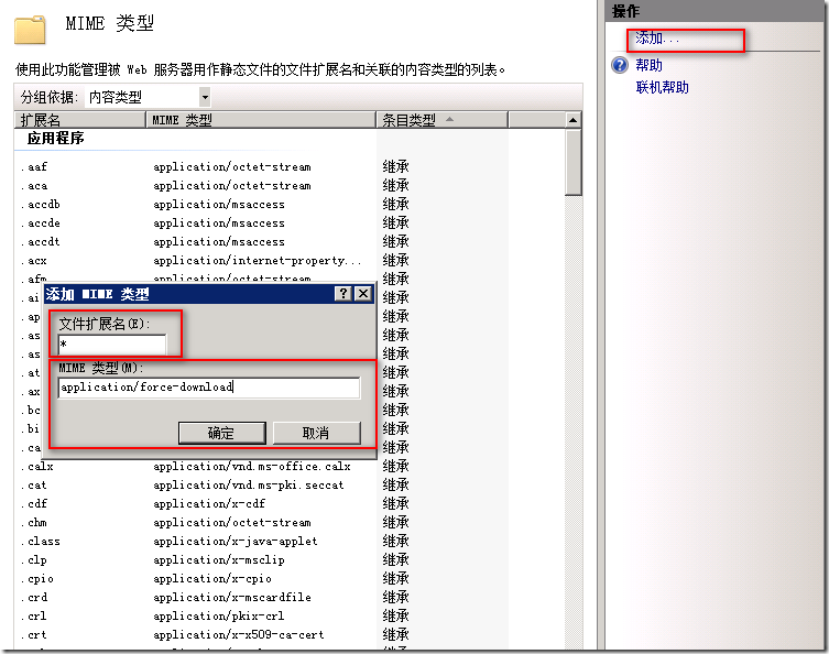 win2008 r2 IIS7.5 设置强制所有文件直接下载