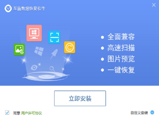 第一步:打开该电脑的常用浏览器搜搜【互盾数据恢复软件】的安装包,将其下载至自定义的分区中,之后运行安装包,点击【立即安装】完成后续的相关操作,下载和安装的路径都要避开误删文件所在分区。