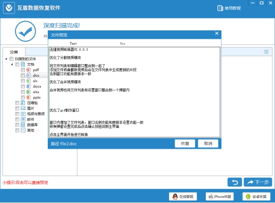 在发现电脑上未备份的文件被误删了之后,根据上述的教程即可进行删除文件的恢复工作了,同时也要及时的做好电脑上重要文件数据的备份工作,如果遇到其他类型的文件丢失误删需要找回也可以借助互盾数据恢复软件来解决的。