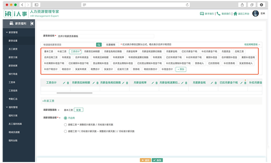 HR根据企业薪资计算方案(如合并计税、分段计薪、福利管理等)要求,进行公式自定义。