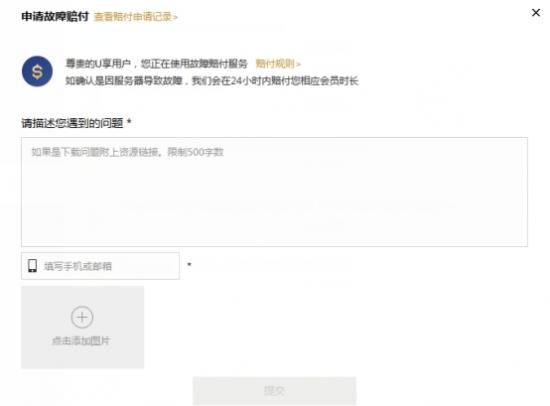 印象特别深刻的是,U享版有一个“故障赔付功能”,如果因为迅雷产品本身导致的产品问题,影响到用户使用体验时,可以获得不等的会员天数的赔付。我之前就因为一部电影下载设置了离线下载,但第二天早上看,卡在99%不动了,反馈以后获得了2天的会员赔付,是不是很贴心?