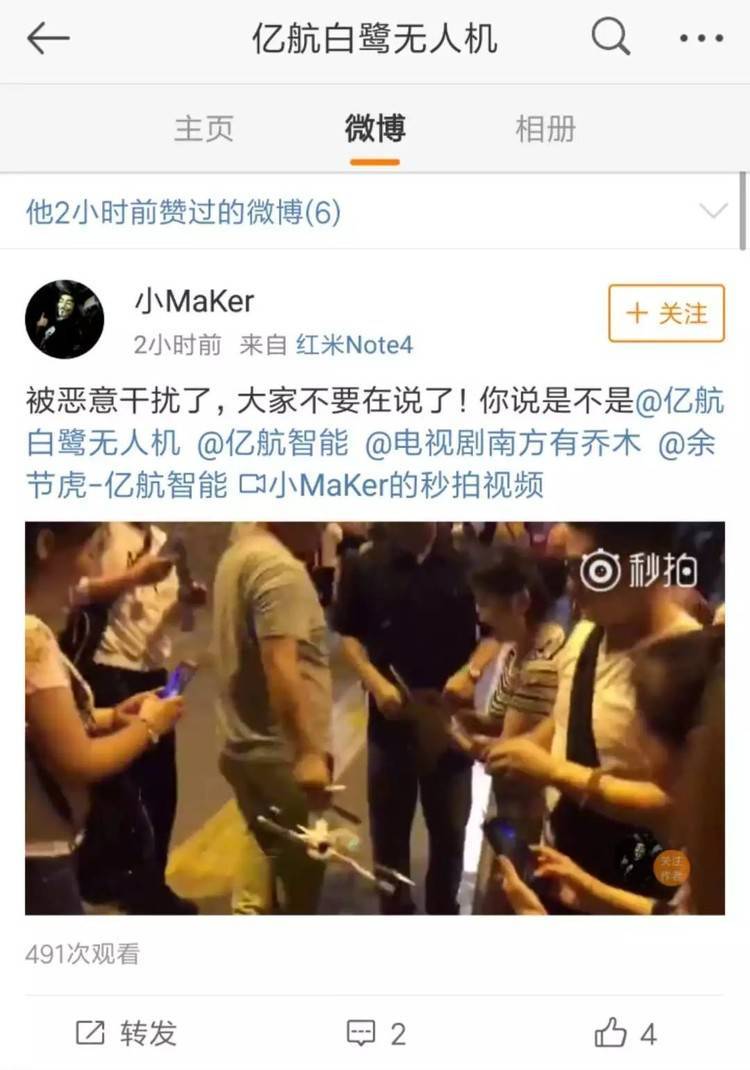 一条互动量极小的微博,得到了亿航官微默默的的点赞