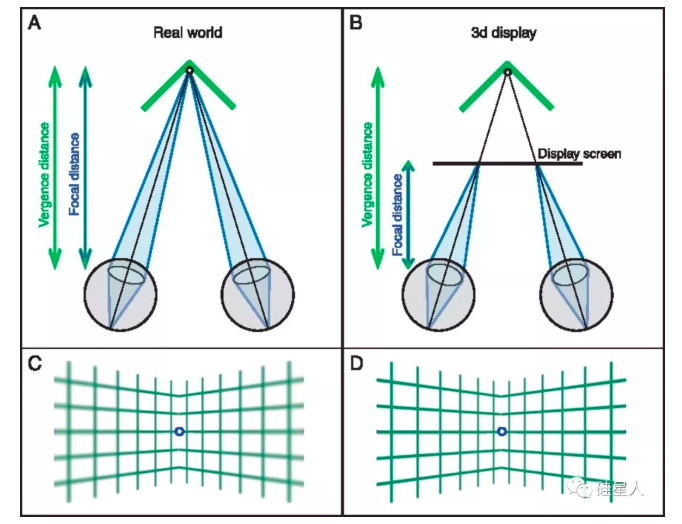 再比如,计算现实业界最想要解决的一个问题,就是当用户使用头显时,人眼看到的真实世界和叠加在其上的计算机生成画面,是位于同一个焦平面上的。