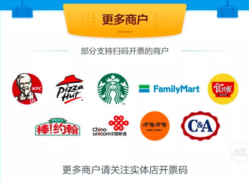 值得一提的是,不是所有的购物小票都可以用支付宝开发票。支付宝也列出了支持扫码开票的商户。