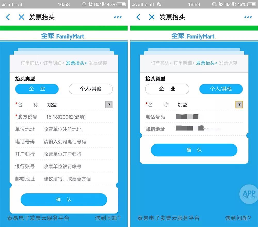 紧接着,选择你的抬头类型,可以选择企业或者个人/其他,然后依次填入名称、税号、地址、电话号码和邮箱等信息。