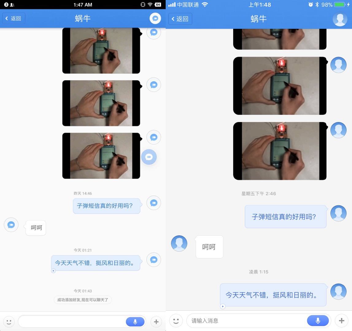 子弹短信的界面依然是一股浓郁的锤子风格,即使在iPhone上也依然如此。当然,快如科技的创始人是前锤子产品经理,锤子是快如的投资人,这并不难理解。