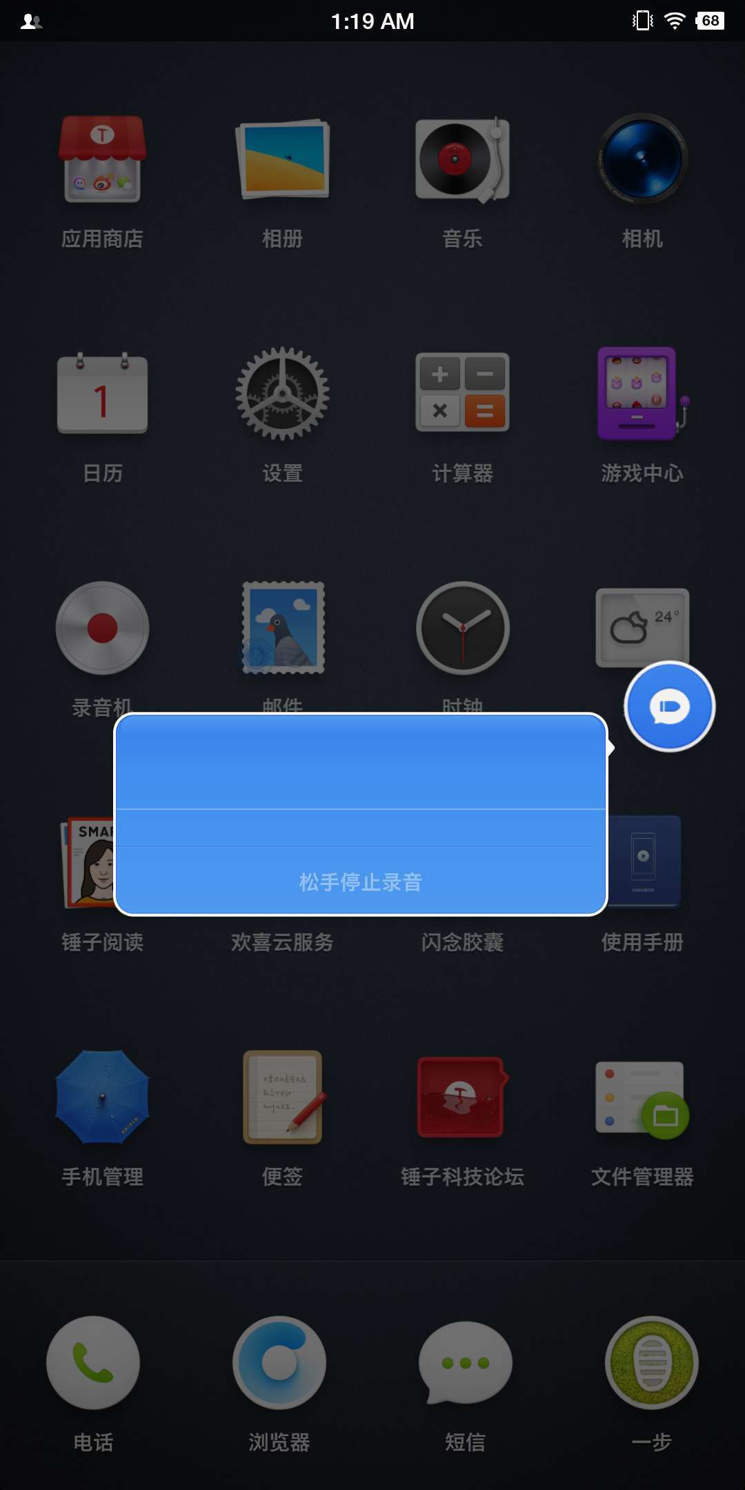 老罗对语音输入有着近乎偏执的痴迷,为此他不惜贡献了无数网络段子。子弹短信的核心功能就是老罗引以为傲的语音输入。