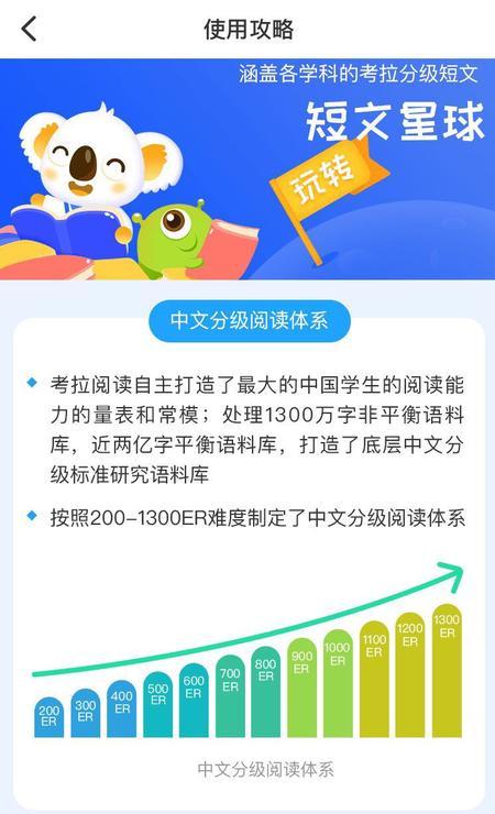 考拉阅读推出的中文分级阅读标准(ER Framework )借鉴了国外的“词、句”的分析思想,度量方式也和蓝思极为相似。(ER为考拉阅读品牌所属公司享阅科技的英文名Enjoy Reading的缩写。)