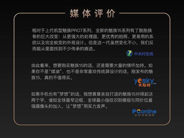 这款手机是魅族现有条件下的最佳作品,献礼15周年的诚意之作,同时它对情怀和商业进行了平衡,从精心打造的外部材质到精益求精的系统体验,虽然不是一款完美的产品,但是它的确是一款优美的作品。
