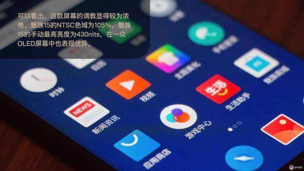 可以看出,这款屏幕的调教有OLED一贯的浓艳,魅族15的NTSC色域为105%,魅族15的手动最高亮度为430nits,在一众OLED屏幕中也表现优异。