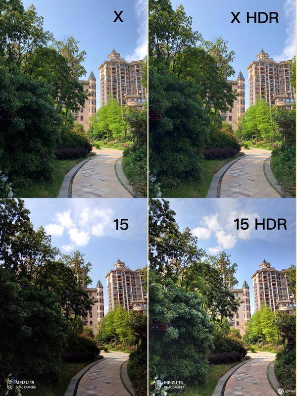 由样张可以看出,X的宽容度很高,不得不佩服苹果的算法,15还需努力。开启HDR后15和X的亮部与暗部细节几乎处于同一水准。