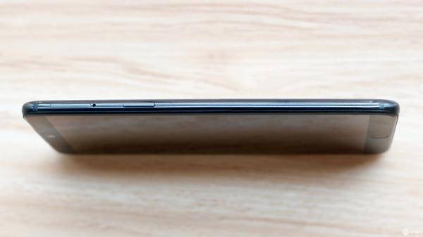 机身背部,看上去是金属拉丝,但摸上去光滑莹净,没有金属的磨砂感,这其实是由特殊工艺将手术级不锈钢和铝合金相结合的材质,由此产生类似陶瓷的手感。不过很容易粘上指纹必须戴套。