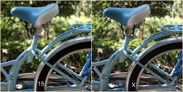 由样张可以看出,人像模式的放大倍数为主镜头的1到2倍之间,X与15两者的抠图精度差别不大,仔细观察自行车上的缝隙的抠图细节X略好于15,虚化程度感觉和X是一致的,但是15人像模式的解析力不如X。这里15的曝光比X准确,但是15在此模式下无法开启HDR。