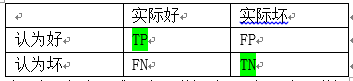 我们取任何一个x值进行分段,如x=0.5,x<0.5我们认为是好人,x>0.5我们认为是坏人,但是这样的认定会有误差,即有可能把实际的好人误判为坏人,也有可能把实际的坏人漏过判为好人,这就形成了在这个分界点下的混淆矩阵(即绿的是对的):