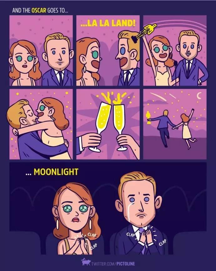 对于此次的乌龙事件,《爱乐之城》获最佳女主角的艾玛·斯通表示: “我他喵的超爱《月光男孩》!当然,听到《爱乐之城》获奖是件极光荣的事,但我们都很爱《月光男孩》,我认为那是史上最棒的电影之一!其实当时我手中拿着最佳女主角的颁奖名单,所以我不知道台上到底发生了什么事”。