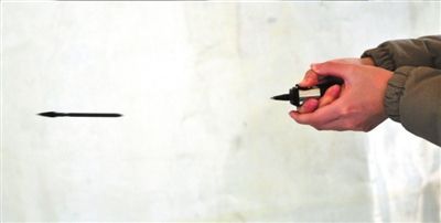 记者试验飞针的威力。本报记者陶冉摄