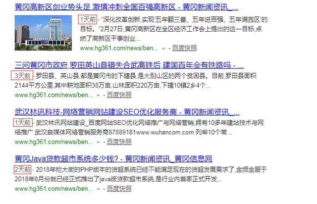 上图红色框框的地方就是表示这个网站发布的新闻,百度很快就收录了。时间很快,展现的机会也就大了很多的。你想想你的产品得到的推广,是不是多了一条销路?